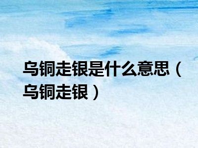 导读 相信目前很多小伙伴对于乌铜走银都比较感兴趣,那么小搜今天在网上也是收集了一些与乌铜走银相关的信息来分享给大家,希望能够帮助到大家哦