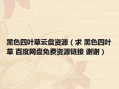 目前应该是有很多小伙伴对于求 黑色四叶草 百度网盘免费资源链接 谢谢方面的信息比较感兴趣,现在小编就收集了一些与求 黑色四叶草 百度网盘免费资源链接 谢谢相关的信息来分享给大家,感兴趣的小伙伴可以接着往下看,希望会帮助到你哦。