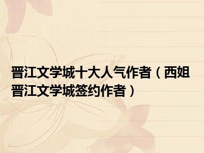 导读 目前是有很多朋友们对于西姐 晋江文学城签约作者这个信息比较感兴趣,那么小编也是收集了一些西姐 晋江文学城签约作者相关的信息来分享给