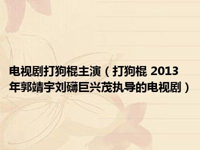 导读 目前是有很多朋友们对于打狗棍 2013年郭靖宇、刘礴、巨兴茂执导的电视剧这个信息比较感兴趣,那么小编也是收集了一些打狗棍 2013年郭靖宇