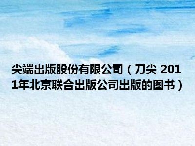 导读 目前是有很多朋友们对于刀尖 2011年北京联合出版公司出版的图书这个信息比较感兴趣,那么小编也是收集了一些刀尖 2011年北京联合出版公司