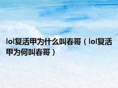 导读相信目前很多小伙伴对于lol复活甲为何叫春哥都比较感兴趣,那么小编今天在网上也是收集了一些与lol复活甲为何叫春哥相关的信息来分享给大...