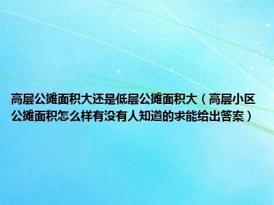 导读 目前大家应该是对高层小区公摊面积怎么样有没有人知道的,求能给出答案!比较感兴趣的,所以今天好房网小编CC就来为大家整理了一些关于高层