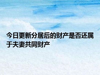 目前大家应该是对分居后的财产是否还属于夫妻共同财产比较感兴趣的,所以今天CC就来为大家整理了一些关于分居后的财产是否还属于夫妻共同财产方面的相关知识来分享给大家,希望大家会喜欢哦。