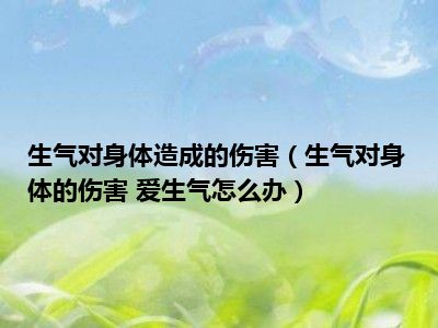 导读 目前大家应该是对生气对身体的伤害 爱生气怎么办比较感兴趣的,所以今天小编CC就来为大家整理了一些关于生气对身体的伤害 爱生气怎么办方...
