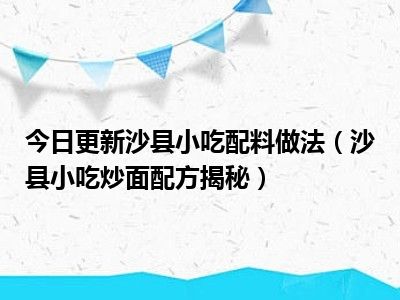 目前上述的内容应该能够为大家解答出大家对于沙县小吃配料做法(沙县小吃炒面配方揭秘)的疑惑了,所以如果大家还想要了解更多的知识内容,也可以关注本站其他文章进行了解哦。