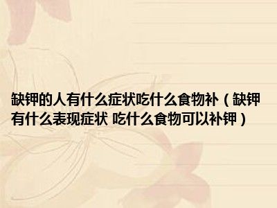 目前大家应该是对缺钾有什么表现症状 吃什么食物可以补钾比较感兴趣的,所以今天小编CC就来为大家整理了一些关于缺钾有什么表现症状 吃什么食物可以补钾方面的相关知识来分享给大家,希望大家会喜欢哦。