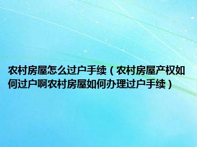 导读 目前大家应该是对农村房屋产权如何过户啊农村房屋如何办理过户手续比较感兴趣的,所以今天好房网小编CC就来为大家整理了一些关于农村房屋产