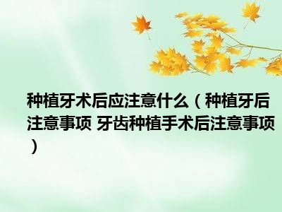 导读 目前大家应该是对·种植牙后注意事项 牙齿种植手术后注意事项比较感兴趣的,所以今天小编CC就来为大家整理了一些关于·种植牙后注意事项 ...
