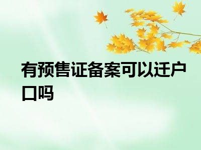 导读 目前大家应该是对有预售证已备案能迁户口吗比较感兴趣的,所以今天好房网小编CC就来为大家整理了一些关于有预售证已备案能迁户口吗