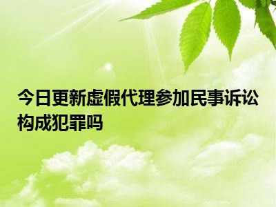 虚假代理参加民事诉讼可能构成虚假诉讼罪。以捏造的事实提起民事诉讼,或者虚假代理参与民事诉讼,都是妨害司法秩序或者严重侵害他人合法权益的犯罪行为,处三年以下有期徒刑、拘役或者管制,并处或者单处罚金;情节严重的,处三年以上七年以下有期徒刑,并处罚金。