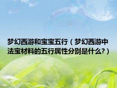 相信目前很多小伙伴对于梦幻西游中法宝材料的五行属性分别是什么?都比较感兴趣,那么小编今天在网上也是收集了一些与梦幻西游中法宝材料的五行属性分别是什么?相关的信息来分享给大家,希望能够帮助到大家哦。