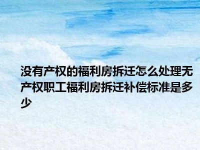 导读 目前大家应该是对无产权的福利房拆迁如何处理 没有产权的职工福利房被拆迁补偿标准是多少比较感兴趣的,所以今天好房网小编CC就来为大家整