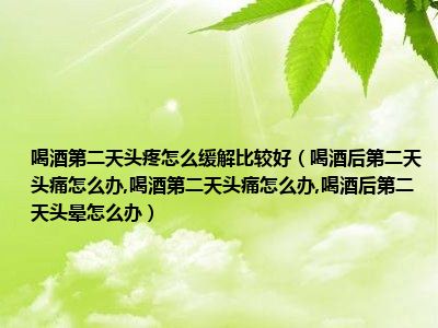 目前大家应该是对喝酒后第二天头痛怎么办,喝酒第二天头痛怎么办,喝酒后第二天头晕怎么办比较感兴趣的,所以今天小编CC就来为大家整理了一些关于喝酒后第二天头痛怎么办,喝酒第二天头痛怎么办,喝酒后第二天头晕怎么办方面的相关知识来分享给大家,希望大家会喜欢哦。