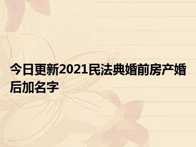 目前大家应该是对2021民法典婚前房产婚后加名字比较感兴趣的,所以今天CC就来为大家整理了一些关于2021民法典婚前房产婚后加名字方面的相关知识来分享给大家,希望大家会喜欢哦。