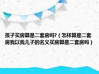自己有住房,给成年子女购房。如果父母名下住房的房产证上写有成年子女的名字,再为子女购房,算第二套;否则,算第一套。自己有住房,以未成年子女名义再购。根据新的政策,家庭成员包括借款人、配偶及未成年子女,即未成年子女也是被划为家庭范畴的。所以以未成年子女的名义申请贷款购房时,就会按照二套房政策执行。未成年时名下有房产,成年后再贷款购房。根据银行“认贷又认房”,如果不出售现有房产的情况下,再贷款购房是属于二套房的,将按照二套房的政策执行。如果按过去政策,未成年时的房产只要没贷款,再申请房贷不算二套。有全款购买住房,再贷款购房。过去只“认贷”,这种情况不算二套房,但现在加了“认房”,虽然没有贷过款,但只要是在房屋产权交易系统中能够查到名下有房产,在不卖掉且申请贷款的情况下,也会被认定为二套房。有贷款购买住房,结清出售后再贷款购房。银行对二套房认定是“认房又认贷”,也就是说虽然贷款买的房产出售以后,家庭名下已没有任何住房,但因为其之前有贷款记录,再申请房贷也会被算作二套房。先商业贷购房,再使用公积金买房。公积金贷款政策也比较严格,只要借款人有过房贷记录,不论房贷是否结清、房产是否出售,即便从未使用过公积金贷款,首次申请公积金贷款也会被算作二套房。婚前一方贷款购房,婚后以另一方名义再购且户口不在一起。