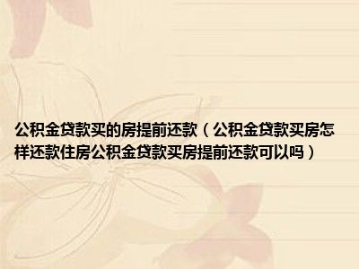 公积金贷款买的房提前还款(公积金贷款买房怎样还款住房公积金贷款买房提前还款可以吗)