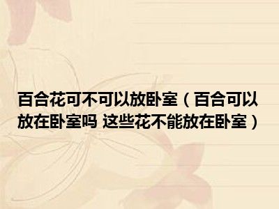 目前大家应该是对百合可以放在卧室吗 这些花不能放在卧室!比较感兴趣的,所以今天小编CC就来为大家整理了一些关于百合可以放在卧室吗 这些花不能放在卧室!方面的相关知识来分享给大家,希望大家会喜欢哦。
