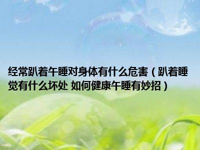 目前大家应该是对趴着睡觉有什么坏处 如何健康午睡有妙招比较感兴趣的,所以今天小编CC就来为大家整理了一些关于趴着睡觉有什么坏处 如何健康午睡有妙招方面的相关知识来分享给大家,希望大家会喜欢哦。