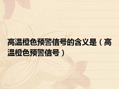 导读 目前是有很多朋友们对于高温橙色预警信号这个信息比较感兴趣,那么小编也是收集了一些高温橙色预警信号相关的信息来分享给大家,希望你会喜