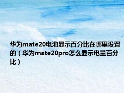 1、 华为mate20pro怎么显示电量百分比?