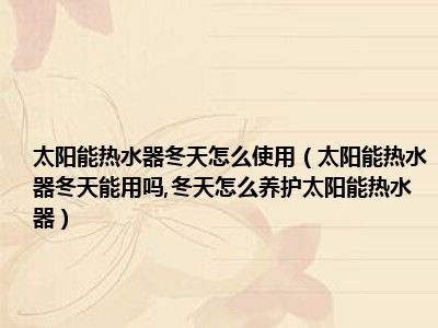 目前大家应该是对太阳能热水器冬天能用吗,冬天怎么养护太阳能热水器比较感兴趣的,所以今天小编CC就来为大家整理了一些关于太阳能热水器冬天能用吗,冬天怎么养护太阳能热水器方面的相关知识来分享给大家,希望大家会喜欢哦。