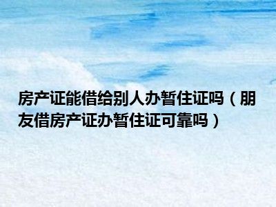 导读 目前大家应该是对朋友借房产证办暂住证可靠吗比较感兴趣的,所以今天好房网小编CC就来为大家整理了一些关于朋友借房产证办暂住证可靠吗方面