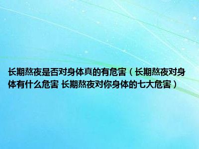 目前大家应该是对长期熬夜对身体有什么危害 长期熬夜对你身体的七大危害比较感兴趣的,所以今天小编CC就来为大家整理了一些关于长期熬夜对身体有什么危害 长期熬夜对你身体的七大危害方面的相关知识来分享给大家,希望大家会喜欢哦。