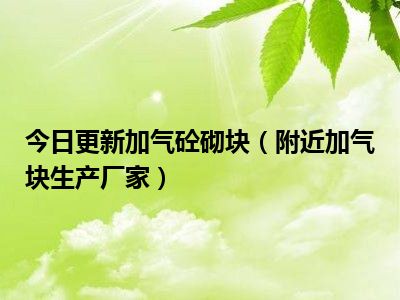 目前上述的内容应该能够为大家解答出大家对于加气砼砌块(附近加气块生产厂家)的疑惑了,所以如果大家还想要了解更多的知识内容,也可以关注本站其他文章进行了解哦。