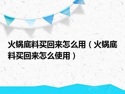 目前应该是有很多小伙伴对于火锅底料买回来怎么使用方面的信息比较感兴趣,现在小编就收集了一些与火锅底料买回来怎么使用相关的信息来分