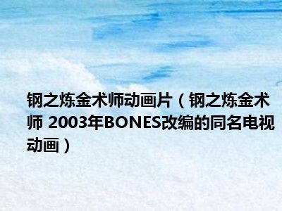 导读 目前是有很多朋友们对于钢之炼金术师 2003年BONES改编的同名电视动画这个信息比较感兴趣,那么小编也是收集了一些钢之炼金术师 2003年BON...