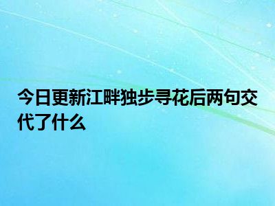 目前大家应该是对江畔独步寻花后两句交代了什么比较感兴趣的,所以今天好房网小编CC就来为大家整理了一些关于江畔独步寻花后两句交代了什么方面的相关知识来分享给大家,希望大家会喜欢哦。