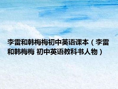 导读 目前是有很多朋友们对于李雷和韩梅梅 初中英语教科书人物这个信息比较感兴趣,那么小编也是收集了一些李雷和韩梅梅 初中英语教科书人物相...