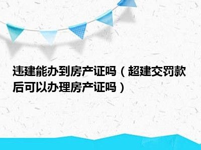 导读 目前大家应该是对超建交罚款后可以办理房产证吗比较感兴趣的,所以今天好房网小编CC就来为大家整理了一些关于超建交罚款后可以办理房产证吗