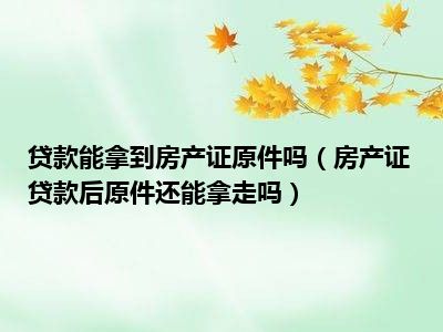 导读 目前大家应该是对房产证贷款后原件还能拿走吗比较感兴趣的,所以今天好房网小编CC就来为大家整理了一些关于房产证贷款后原件还能拿走吗方面