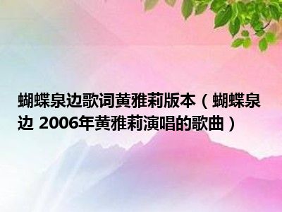 1、《蝴蝶泉边》是黄雅莉演唱的歌曲,由彭青创作词曲,收录于黄雅莉2006年发行的音乐专辑《崽崽》。