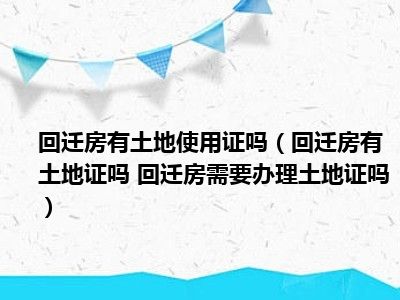导读 目前大家应该是对回迁房有土地证吗 回迁房需要办理土地证吗比较感兴趣的,所以今天好房网小编CC就来为大家整理了一些关于回迁房有土地证吗