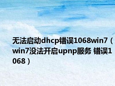 相信目前很多小伙伴对于win7没法开启upnp服务 错误1068都比较感兴趣,那么小编今天在网上也是收集了一些与win7没法开启upnp服务 错误1068相关的信息来分享给大家,希望能够帮助到大家哦。