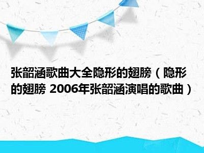 导读 目前是有很多朋友们对于隐形的翅膀 2006年张韶涵演唱的歌曲这个信息比较感兴趣,那么小编也是收集了一些隐形的翅膀 2006年张韶涵演唱的歌