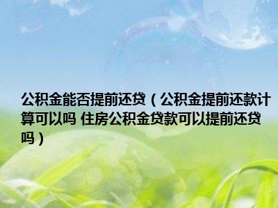 导读 目前大家应该是对公积金提前还款计算可以吗 住房公积金贷款可以提前还贷吗比较感兴趣的,所以今天好房网小编CC就来为大家整理了一些关于公
