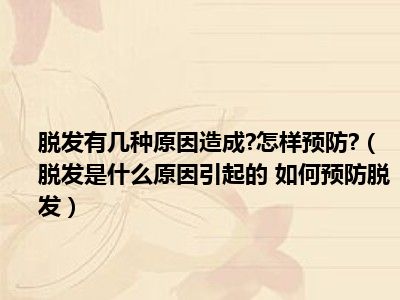 目前大家应该是对脱发是什么原因引起的 如何预防脱发比较感兴趣的,所以今天小编CC就来为大家整理了一些关于脱发是什么原因引起的 如何预防脱发方面的相关知识来分享给大家,希望大家会喜欢哦。