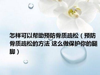 导读 目前大家应该是对预防骨质疏松的方法 这么做保护你的腿脚比较感兴趣的,所以今天小编CC就来为大家整理了一些关于预防骨质疏松的方法 这么...