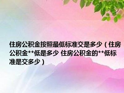 **低是你工资的5%,单位及个人的住房公积金缴存比例可在5%~20%自行选择,个人缴存比例应等于或高于单位缴存比例。另外,2010年1月1日后新参加工作的职工,从参加工作的第2个月开始缴存住房公积金,以其参加工作的第2个月工资总额作为缴存基数。2010年1月1日后新调入的职工,从调入当月开始缴存住房公积金,以其调入当月工资总额作为缴存基数。根据规定,单位及个人的住房公积金缴存比例各为5%~20%,具体缴存比例由单位和个人根据实际情况自行选择。每个单位只能选定一个缴存比例,个人缴存比例应当等于或高于单位缴存比例。缴存比例取1%的整数倍。所以有市民反映单位缴存比例低于个人缴存比例的情况,不属于违规行为。拓展资料住房公积金每月缴纳公式。个人和单位每月缴存公积金的数额 = 工资上一年月平均值 ×缴存住房公积金比例举例说明怎样计算住房公积金你缴纳额?假如2015年你平均工资为6000元/月,此前的公积金缴纳比例是15%,那单位和个人每月分别要缴纳6000*15%=900元,你的月公积金等于有1800元。