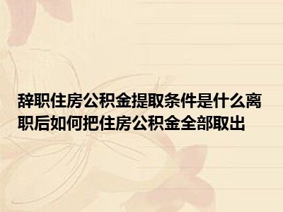 导读 目前大家应该是对辞职住房公积金提取条件有哪些 离职后住房公积金怎么全部取出来比较感兴趣的,所以今天好房网小编CC就来为大家整理了一些