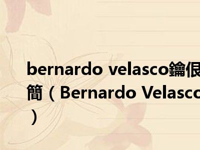 导读 目前是有很多朋友们对于Bernardo Velasco这个信息比较感兴趣,那么小编也是收集了一些Bernardo Velasco相关的信息来分享给大家,希望你会...