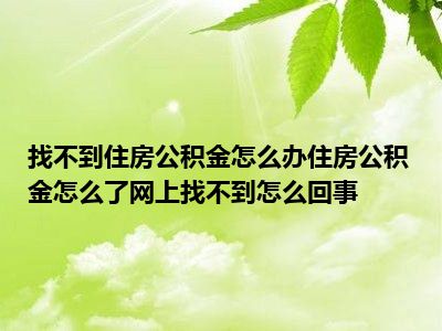 导读 目前大家应该是对住房公积金查不到怎么办 住房公积金怎么了在网上查不到是怎么回事比较感兴趣的,所以今天好房网小编CC就来为大家整理了一