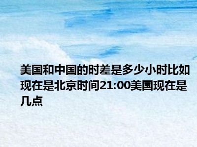 相信目前很多小伙伴对于美国和中国的时差是多少小时。例如现在是北京时间 21:00,那是美国时间几点钟?都比较感兴趣,那么小编今天在网上也是收集了一些与美国和中国的时差是多少小时。例如现在是北京时间 21:00,那是美国时间几点钟?相关的信息来分享给大家,希望能够帮助到大家哦。