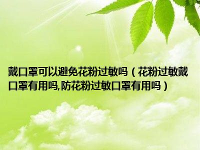 目前大家应该是对花粉过敏戴口罩有用吗,防花粉过敏口罩有用吗比较感兴趣的,所以今天小编CC就来为大家整理了一些关于花粉过敏戴口罩有用吗,防花粉过敏口罩有用吗方面的相关知识来分享给大家,希望大家会喜欢哦。