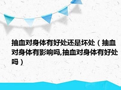 目前大家应该是对抽血对身体有影响吗,抽血对身体有好处吗比较感兴趣的,所以今天小编CC就来为大家整理了一些关于抽血对身体有影响吗,抽血对身体有好处吗方面的相关知识来分享给大家,希望大家会喜欢哦。