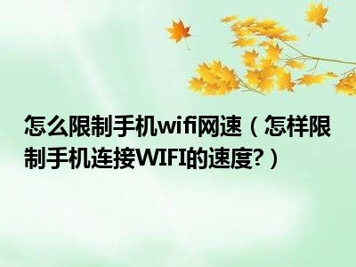 相信目前很多小伙伴对于怎样限制手机连接WIFI的速度?都比较感兴趣,那么小编今天在网上也是收集了一些与怎样限制手机连接WIFI的速度?相关的信息来分享给大家,希望能够帮助到大家哦。